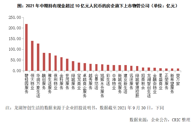 華潤萬象生活在此時(shí)開始大舉并購,究其原因,一方面是因?yàn)槠髽I(yè)擁有著充足的現(xiàn)金儲備。自從在2020年底完成了IPO成功募集120億港元之后,華潤萬象生活并沒有進(jìn)行過大規(guī)模的投資,因此截至2021年中仍擁有著近128億元的持有現(xiàn)金,在各家已上市的房企旗下物管公司中排名第三。