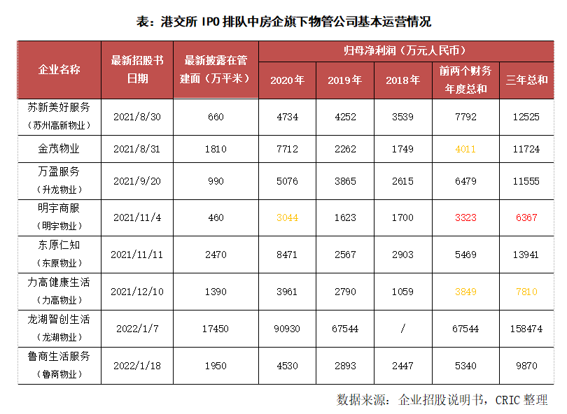 上市門檻的提升導(dǎo)致部分物企在招股書失效后就放棄了繼續(xù)上市的嘗試,比如眾安集團(tuán)旗下的眾安智慧生活等。2021年新遞交上市申請的28家物管企業(yè)中,有9家在招股書到期后就暫時(shí)放棄了繼續(xù)申請上市。而在截至1月27日仍在港交所排隊(duì)的房企旗下物管企業(yè)中,明宇商服的盈利指標(biāo)低于港交所門檻,部分企業(yè)匯率換算后檫過門檻。整體來看,當(dāng)前還在排隊(duì)等待IPO的房企旗下物管企業(yè)中,大部分都能滿足要求。