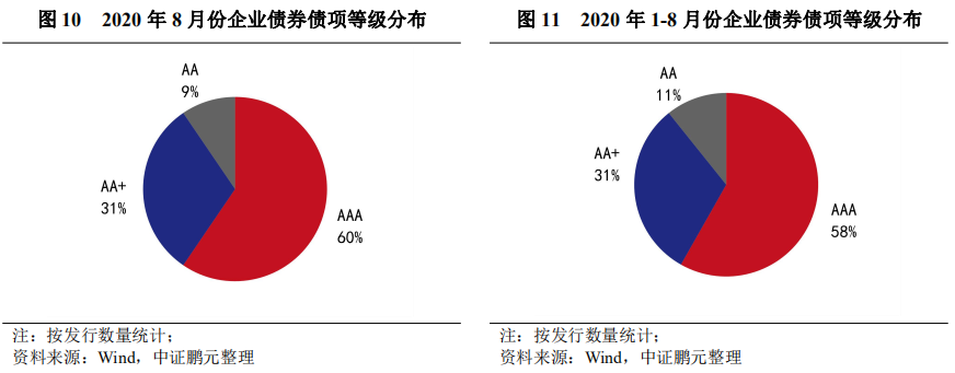 2020年8月,債券市場流動性經歷過極度寬松和緊張后回歸平穩,同時受償還壓力影響,當月債券發行數量提升,高信用等級的發行主體增信比例提升,債券平均發行利率下行,平均發行利差收窄。
