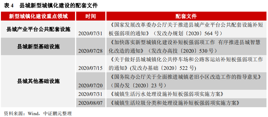 此外,8月18日,發改委發布《關于信貸支持縣城城鎮化補短板強弱項的通知》 (發改規劃〔2020〕1278號)作為城鎮化建設配套文件,明確相關支持條件:第一,符合《發行指引》的建設內容要求。第二,項目收入在運營期內可以覆蓋貸款本息,且資本金不低于國家最低比例,同時或先于貸款到位。第二,借款人為公益二類或經營類事業法人,具有承擔新型城鎮化建設項目投資運營的相關資質和能力。此外,明確“對符合條件的項目,可通過直接投資、資本金注入、投資補助、貸款貼息等方式,優先安排財政性資金或地方政府專項債券,以促進項目的經營性現金流與貸款條件相匹配。各地區通過提高地方政府專項債券作為項目資本金比例等方式,加強與六家銀行信貸投放的配套銜接?!?/span>