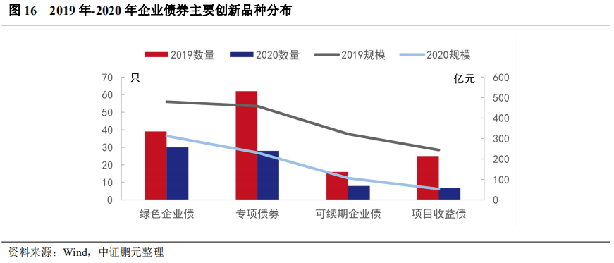 8月,綠色企業債發行8只,2020年累計發行30只,規模合計312.60元,已達到2019年全年發行數量的76.9%,是企業債主要創新品種中增長最明顯的品種。2020年綠色債券全市場[1]發行數量和規模分別達到2019年全年的87%和68%,其中綠色企業債的規模占比基本持平。