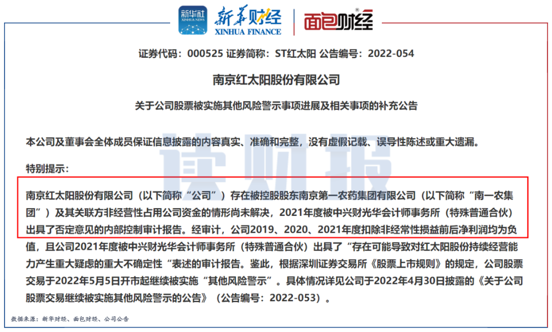 根據(jù)2021年年報,當(dāng)期海通證券和海通資管均身陷與與南京第一農(nóng)藥集團有限公司的質(zhì)押式證券回購糾紛案,涉案本金分別為3億元和3.2億元,涉及的質(zhì)押標的為ST紅太陽(證券代碼:000525)。2021年6月,南一農(nóng)公司已被法院裁定破產(chǎn)重整。
