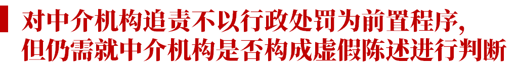 需要注意的問題是,由于中介機構未受行政處罰,因此中介機構是否構成虛假陳述尚無定論。我們認為,不能以上市公司已經構成虛假陳述為由,就必然得出中介機構也同樣構成虛假陳述的結論。中介機構是否構成虛假陳述,還需要結合中介機構的職責范圍、注意義務、履職行為等事實,通過案件的具體審理加以認定。