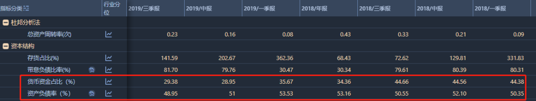 宜華生活的財(cái)報(bào)顯示,2015年至2019年三季度,公司貨幣資金分別為34.26億元、35.52億元、42.29億元、33.89億元和26.64億元,分別占當(dāng)年總資產(chǎn)的26.92%、22.24%、25.32%、19%和16%。