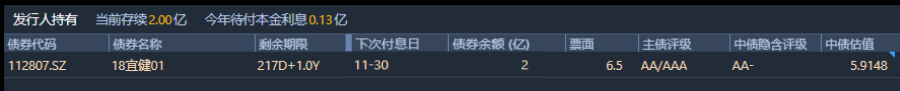 宜華健康當(dāng)前流通中債券存續(xù)存續(xù)2.00億元,今年待付本金利息0.13億元。