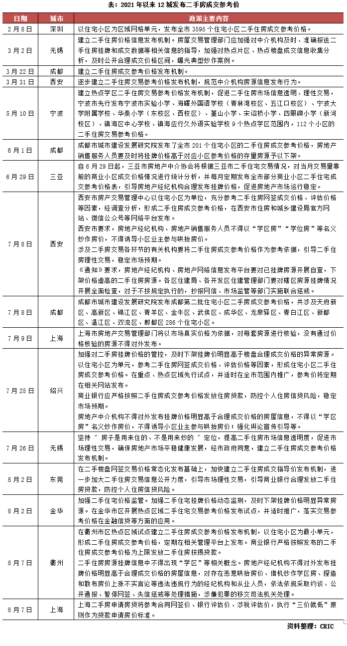據(jù)不完全統(tǒng)計顯示,自2月8日深圳率先發(fā)布二手住房成交參考價格以來,截至目前已有無錫、成都、西安等12個城市相繼建立二手房成交參考價格,以期維穩(wěn)二手房市場,防止二手房價格異動上漲。