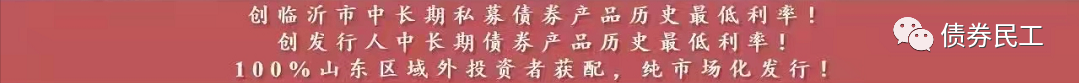 2、強調區域最低利率+純市場化發行的海報,比如發行利率創臨沂市中長期私募債利率最低、發行人歷史最低利率、100%純市場化發行。
