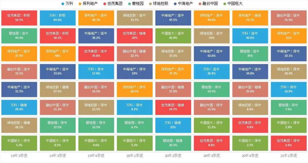 以最近被質疑保守的中海來講其拿地曲線也是波動的過去兩年時間里基本保持在適中狀態(tài)部分季度保持在保守狀態(tài)