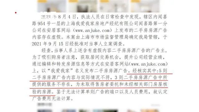 同時媒體還報道了,近日,上海我愛我家房地產經紀有限公司因“利用廣告對商品或服務作虛假宣傳,欺騙和誤導消費者”被上海市靜安區市場監督管理局罰款20萬元。