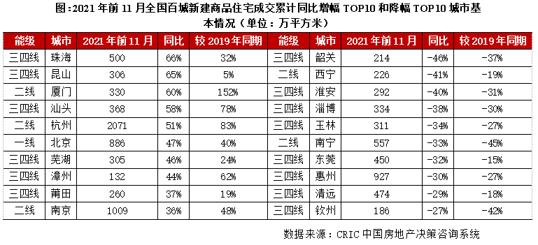 附表2:2021年1-11月100個(gè)典型城市分能級新建商品住宅成交情況(單位:萬平方米)(略)
