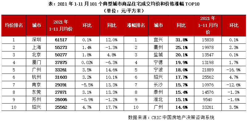 附表3:2021年1-11月101個(gè)典型城市新建商品住宅成交均價(jià)情況(單位:元/平方米)(略)