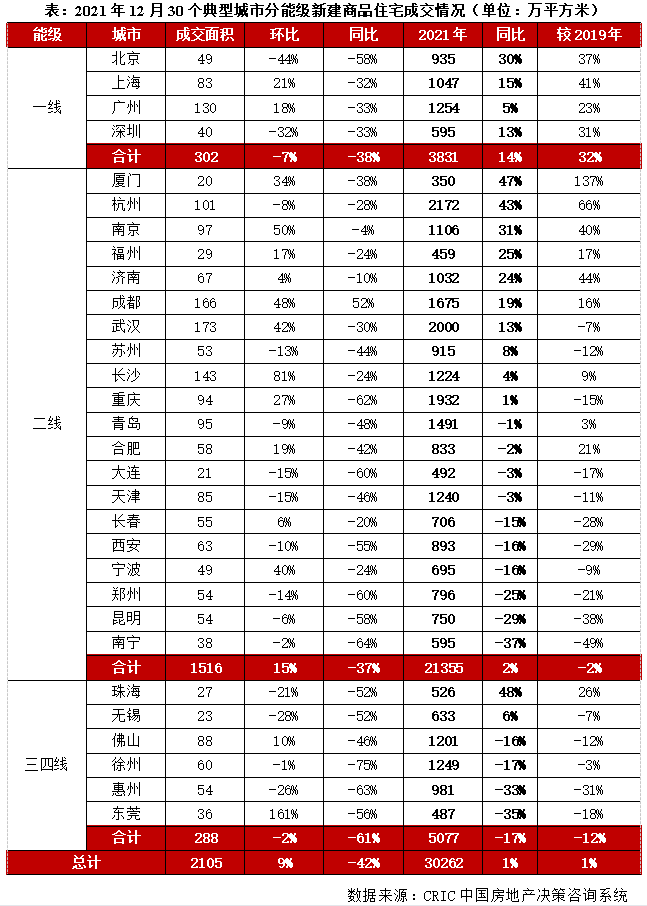 通過估算30個(gè)重點(diǎn)城市12月成交量環(huán)比增長9%,預(yù)計(jì)全年商品住宅成交面積再創(chuàng)新高,同比微增。