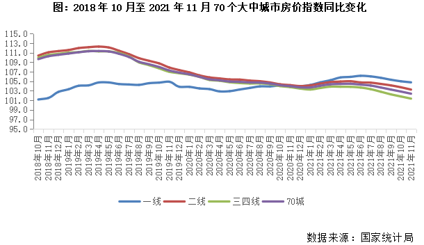 2021年四季度,全國各等級城市房價(jià)指數(shù)繼三季度持續(xù)回落,受全面調(diào)控抑制樓市的政策高壓,全國市場房價(jià)普遍得到抑制。具體來看,一線城市高位持續(xù)回落,深圳前期過熱的房價(jià)漲幅得以調(diào)控,二線城市普遍加速下行,三四線城市仍保持分化行情,輪動(dòng)效應(yīng)下江浙沿海及中西部強(qiáng)三四線城市得到補(bǔ)漲,在“因城施策”的主基調(diào)下各類托市政策出臺(tái)穩(wěn)定房價(jià),局部經(jīng)濟(jì)弱市在“以價(jià)換量”的市場風(fēng)氣下房價(jià)難有起色。