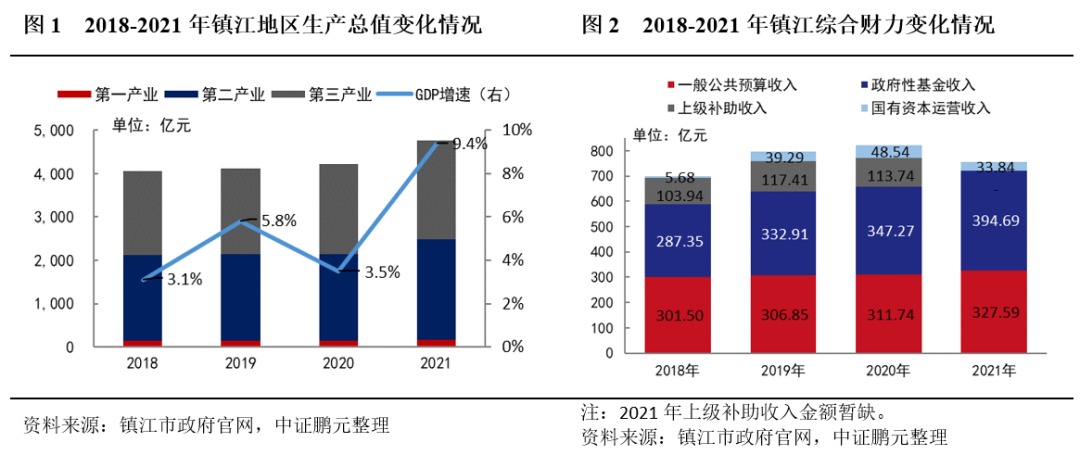 鎮(zhèn)江市經(jīng)濟(jì)和綜合財(cái)力增速明顯加快。鎮(zhèn)江市2021年GDP增速明顯高于全省均值及大部分江蘇省地級(jí)市,土地財(cái)政發(fā)力及稅收增長帶動(dòng)下,綜合財(cái)力亦保持快速增長,但整體仍屬于偏弱水平,GDP和綜合財(cái)力省內(nèi)僅優(yōu)于宿遷、連云港和淮安。