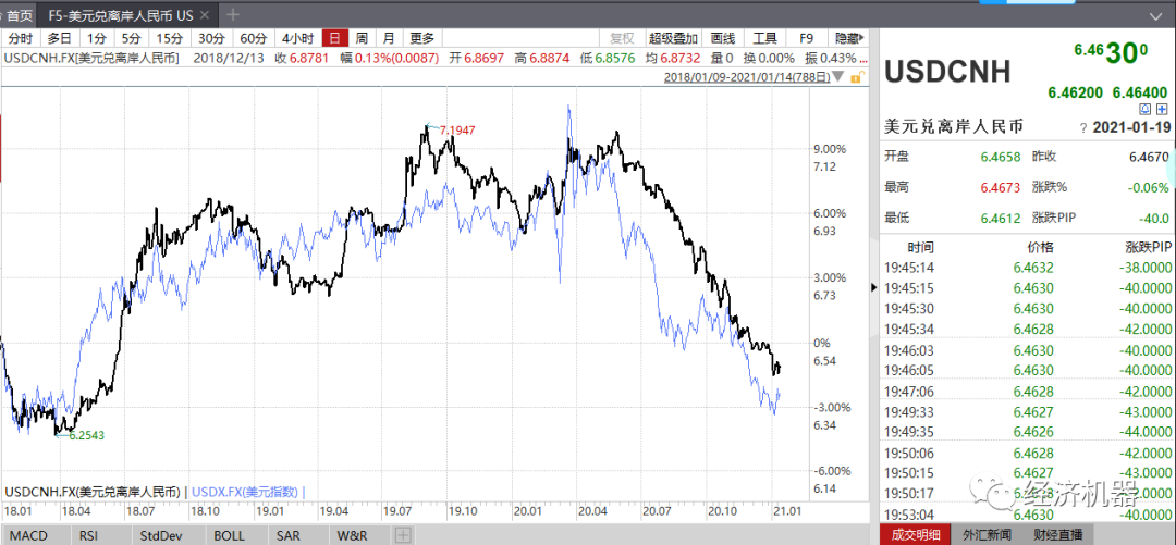 在此情景下,美國經濟復蘇和再通脹將是主要矛盾,美元指數大概率會在2021年出現觸底反彈。人民幣對美元匯率上半年或仍將維持一段時間的強勢水平,但