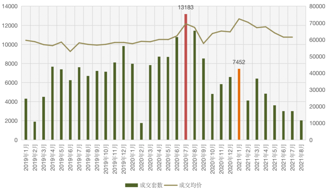 圖:2019年1月-2021年8月成都二手住宅成交套數(shù)走勢(單位:套)