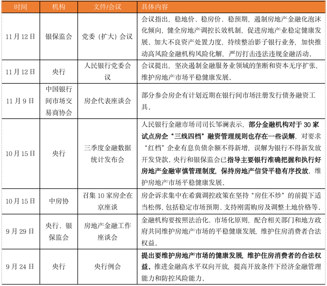 圖:9月底以來政策密集發(fā)聲維穩(wěn)房地產(chǎn),支持房企融資