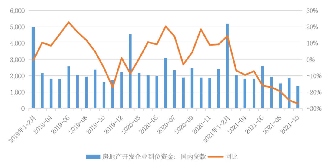 雖然當前政策風(fēng)向緩和以及個人按揭貸款發(fā)放提速,但仍未明顯傳導(dǎo)到企業(yè)貸款方面,金融機構(gòu)對開發(fā)企業(yè)的信心重塑仍需時間。1-10月的企業(yè)端貸款仍顯不足,10月新增企業(yè)中長期貸款2190億元,同比少增1923億元;而從10月的房企到位資金來看,其中國內(nèi)貸款1378億元,同比減少27.2%,降幅較9月擴大2.3個百分點,房企的開發(fā)貸、信托貸款方面的融資放松仍需時間。