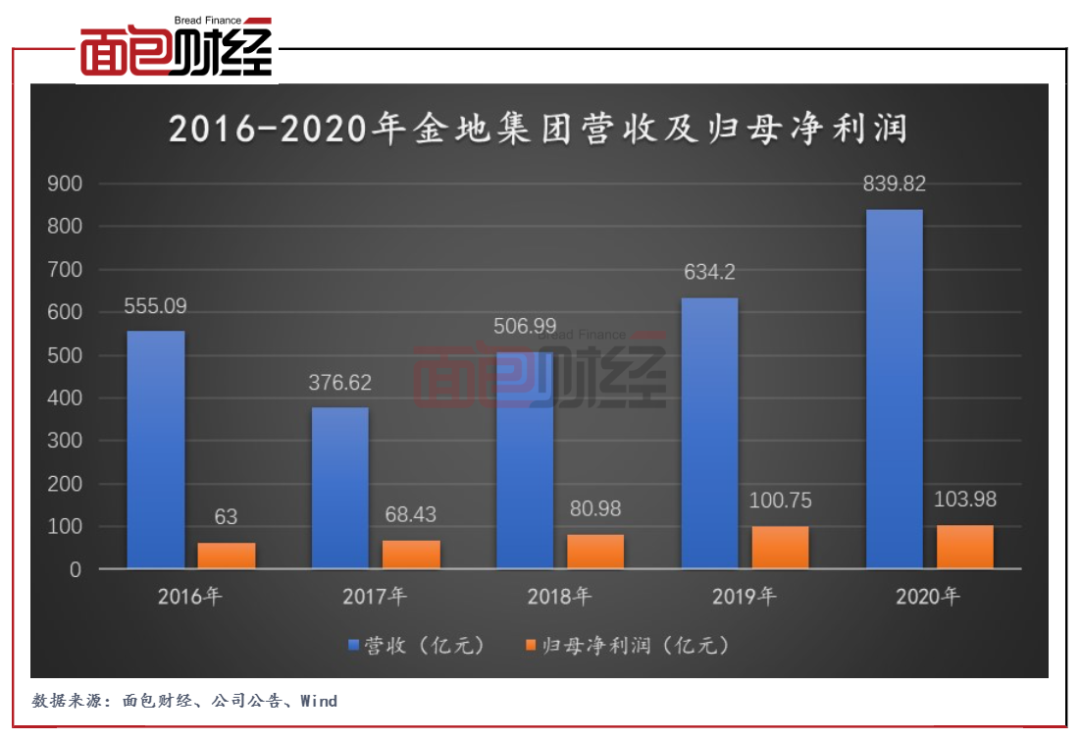 金地集團(tuán)2020年年報(bào)顯示,公司當(dāng)年實(shí)現(xiàn)營收839.8億元,同比增長32.6%;實(shí)現(xiàn)歸母凈利潤103.98億元,同比增長3.2%。
