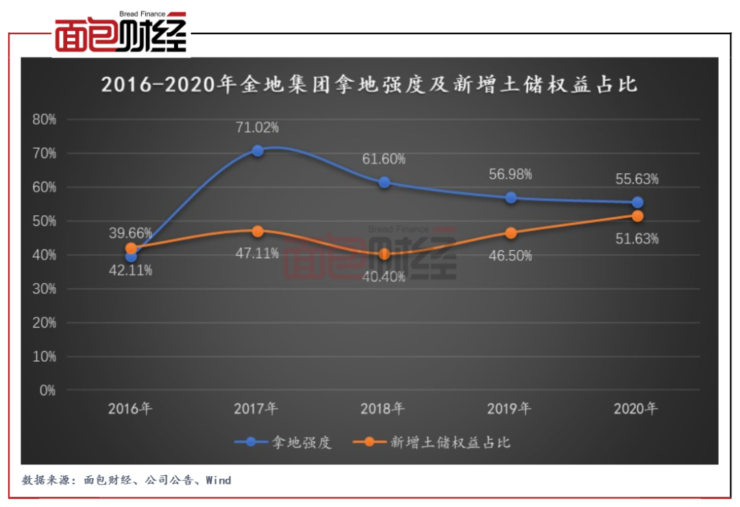 按照房地產(chǎn)行業(yè)的特性,結(jié)算毛利率相對(duì)來說是滯后的,從拿地毛利率兌現(xiàn)到結(jié)算毛利率,可能與融資成本、推盤節(jié)奏和結(jié)算結(jié)構(gòu)有關(guān)。追溯金地集團(tuán)過往拿地及銷售數(shù)據(jù),自2016年開始,公司尋求銷售規(guī)模的快速增長,與之匹配的拿地儲(chǔ)備也全面加速。