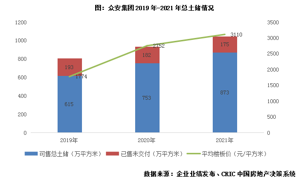 【土地儲備充裕,滿足未來5年開發所需】截止2021年底,眾安集團共擁有總土儲建面1048萬平方米,其中已售未交付面積175萬平方米,剩余可售面積約873萬平方米左右,按照管理層的預估,可以滿足企業未來5年發展所需,土儲較為充裕。