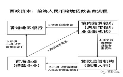 前??缇橙嗣駧刨J款系指在前海注冊成立并在前海實際經營或投資的企業從香港經營人民幣業務的銀行借入人民幣資金的業務。資金用途上不得用于投資有價證券和金融衍生品,不得用于委托貸款,不得用于購買理財產品,不得用于購買非自用房產等。其基本流程如下: