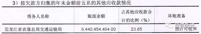 北大荒2019年底其他應收款227.02億,占總資產(chǎn)比重11.4%,規(guī)模和占比是比較大的,且三年以上其他應收款占比達到了39.23%,賬齡偏長,整體其他應收款質(zhì)量是比較差的。這里面很大一部分是非經(jīng)營性占款,被股東或者關聯(lián)方占用了,欠款最多的就是黑龍江農(nóng)墾局交通運輸局,占用了64億,三亞保力房地產(chǎn)是黑龍江建投下面的地產(chǎn)公司,公司拆借了10億給他,第五名錦州蘭星石化是個民企,公司拆借了8億。僅僅這前五大,非經(jīng)營占款就達到了90億左右,而且前五大占比近40%,后面還有60%也就是130多億沒有披露明細,這里面很可能還有很多非經(jīng)營占款。這么大金額被挪用到體外的資金我們是很難在北大荒自己的資料里面跟蹤到其這部分被占用資金的實際風險的。