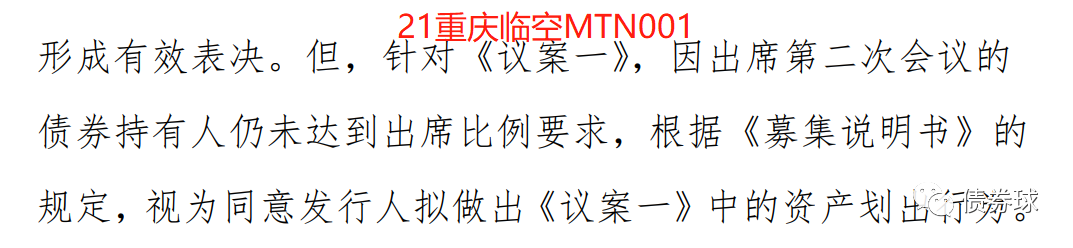 前兩天,重慶臨空因資產(chǎn)劃轉(zhuǎn)的事情, 18臨空投MTN001、21重慶臨空MTN001和21重慶臨空MTN002分別召開了持有人會議,并就持有人會議召開未達到有效條件進行了公告。協(xié)會產(chǎn)品就持有人會議召開未達到有效條件進行公告并非個例,但是在此前提下,個別議案依然可以執(zhí)行卻較為少見。