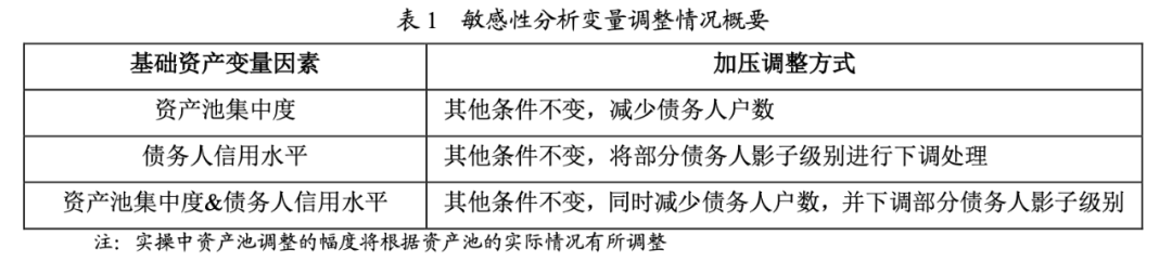 循環(huán)購買的交易結構下,跟蹤評級時,如專項計劃仍處于循環(huán)購買期,截至跟蹤基準日剩余資產(chǎn)池的質量明顯優(yōu)于基礎資產(chǎn)合格標準的最低要求的,未來仍將進行多次循環(huán)購買的情形下,如后續(xù)循環(huán)購買基礎資產(chǎn)質量下降,將對優(yōu)先級證券帶來不利影響,因此我們會補充進行敏感性分析測試。一般情況下,我們將在滿足基礎資產(chǎn)合格標準要求的前提下,從資產(chǎn)池集中度和債務人信用水平兩個角度對資產(chǎn)池進行調整,重新進行三大模型測試,綜合量化測試結果進一步判定剩余優(yōu)先級證券的信用等級。