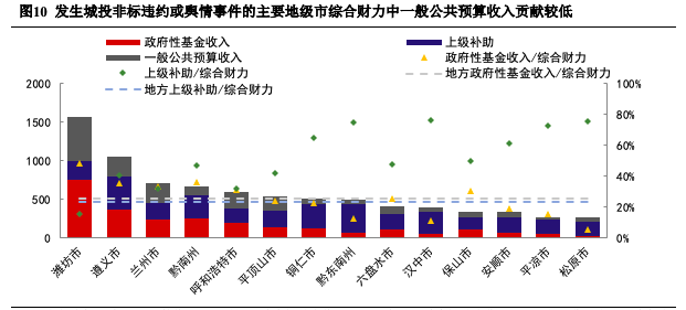 二、發生非標違約或輿情事件的地級市大多經濟發展水平較低,地方財力依賴于土地財政或上級補助,地方金融資源稟賦弱,易受融資政策變化沖擊