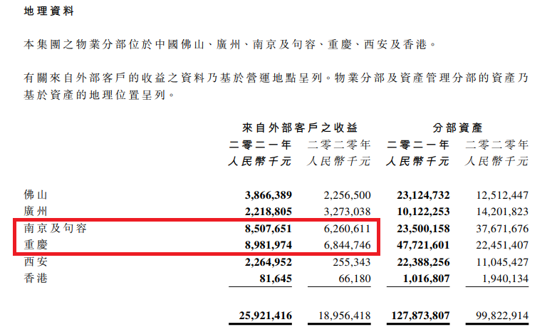 不過,從業(yè)績公告看,至少2021年,招商局置地在南京及句容的銷售面積占比還是很高,高達50.71%,合同銷售面積為88.25萬平米,合同銷售金額約為279.90億元。