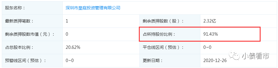 截至2020年末,皇庭國際的控股股東皇庭投資已質押2.32億股公司股份,股權質押率為91.43%,鄭康豪股權質押率達52.69%,高質押率背后隱藏著平倉風險。