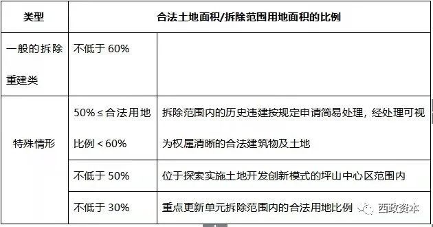 在規(guī)劃層面判斷項目的可行性之后,項目本體的情況成為了第二個重點關注對象,比如擬申報更新的用地范圍內,如果五類地對應的合法用地面積無法達到60%,而且也無法通過非農、征返指標調入或飛地等方式解決,那項目連更新立項的條件都無法達到。