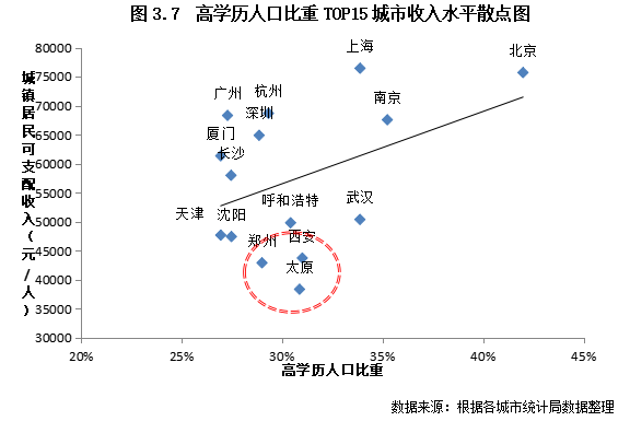 3.2西安、太原高學歷人才比例遠超廣州,但經濟發展潛力有待進一步發掘