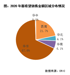 新希望地產銷售規模的增長,一方面得益于其城市深耕、區域聚焦策略。2020年銷售業績的接近90%來源于華東和西南的9個城市,城市深耕策略顯著,其中,杭州、南京、溫州、成都4城的銷售金額貢獻超過100億元以上。截至2020年底,新希望地產在售項目主要集中在15個高能級城市中,主要分布在長三角城市群、西南核心城市和粵港澳大灣區三大核心城市群,這些城市普遍市政配套較為完善、居民擁有較強的購買力,使得抗風險能力較強,為新希望貢獻穩定的銷售。