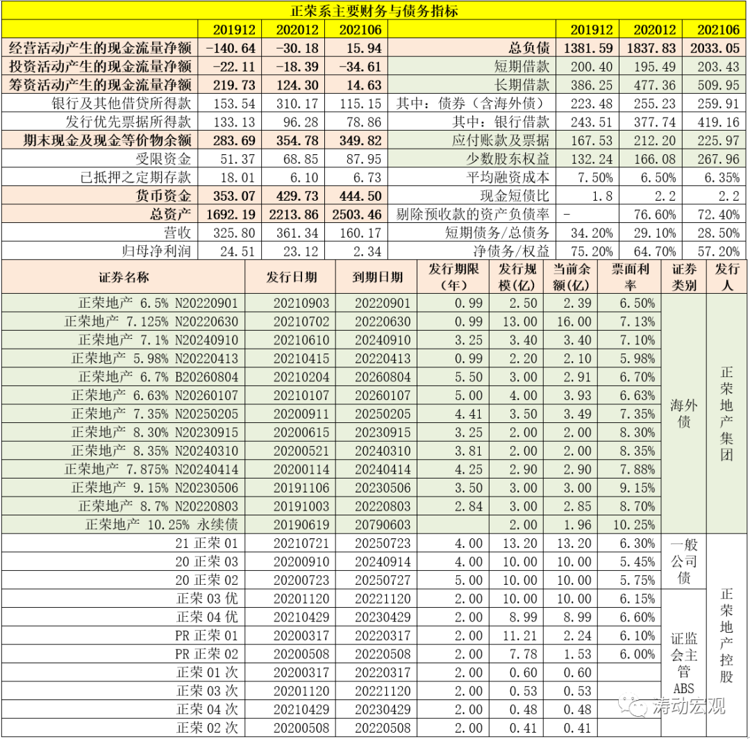 我們關注到,2022年4月13日正榮地產(chǎn)集團有2.10億美元的海外債到期、6月30日有16億美元的海外債到期、8月3日有2.85億美元的海外債到期以及9月1日有2.39億美元的海外債到期。