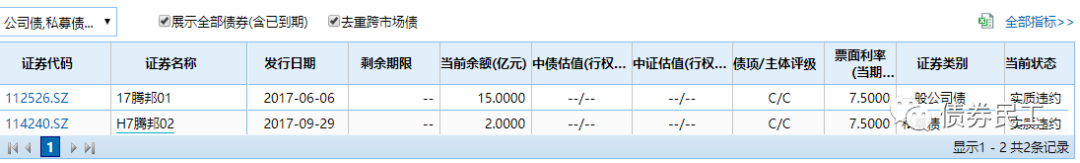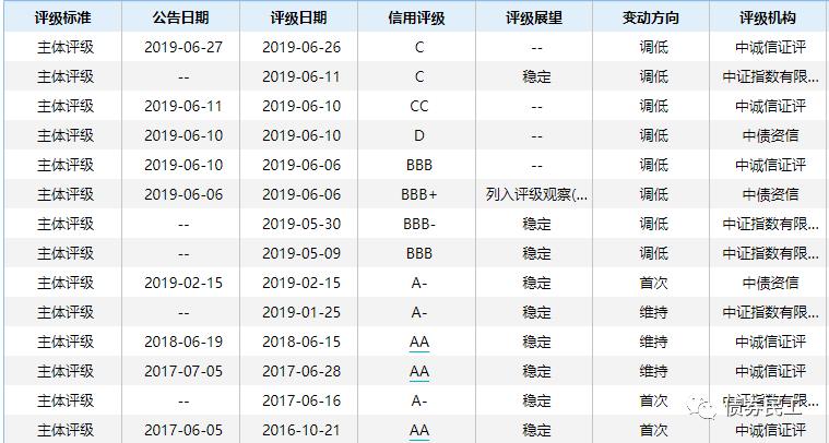 騰邦集團有限公司的主體信用評級已經從2016年的AA下調至C,信用評級呈現斷崖式下跌。
