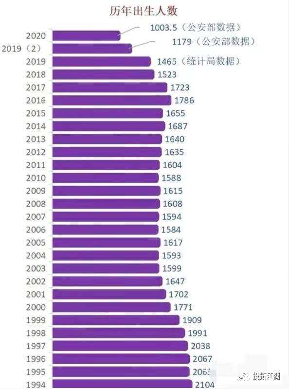 根據(jù)上圖可以看出,在2016年以后算起,我們國家新增人口,已經(jīng)出現(xiàn)了四連降。而2016年是一個轉(zhuǎn)折點,因為在這一年以前,全面放開二孩政策在各地執(zhí)行落地,出現(xiàn)了一小波人口出生高潮,享受了持續(xù)的政策紅利。如果不是二孩放開政策,可能新增人口減少的趨勢會加速進行。問題到了2020年,開始變得嚴重起來,新出生人口剛剛過1000萬,2021年能不能超過1000萬,估計很難說。所以,近期有專家紛紛建議盡快放開人口生育限制,鼓勵大家多生小孩,甚至一度傳出東北將開放生育試點。