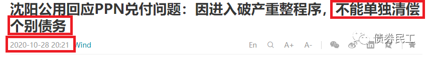 不過根據21世紀經濟報道的10月28日晚間的報道,沈陽公用回應“不能單獨清償個別債務”。