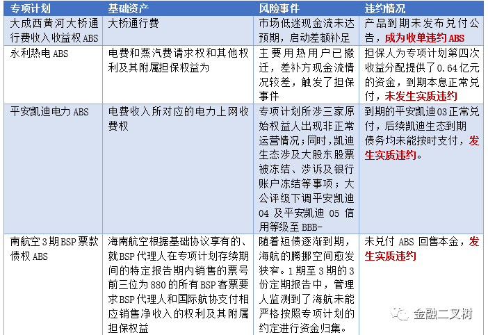 當現(xiàn)金流惡化時,到期現(xiàn)金流不足以支付優(yōu)先級本息時,觸發(fā)增信措施,這時候通常不認為發(fā)生違約,而是觸發(fā)風險事件,當所有增信措施不足以覆蓋優(yōu)先級本息時,我們認為ABS產品發(fā)生實質違約。