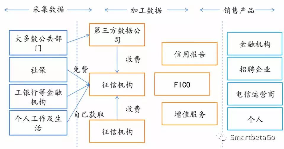 征信的業務流程主要是按一定規則合法采集企業、個人的信用信息,加工整理形成企業、個人的信用報告等征信產品,有償提供給經濟活動中的貸款方、賒銷方、招標方、出租方、保險方等有合法需求的信息使用者,為其了解交易對方的信用狀況提供便利。