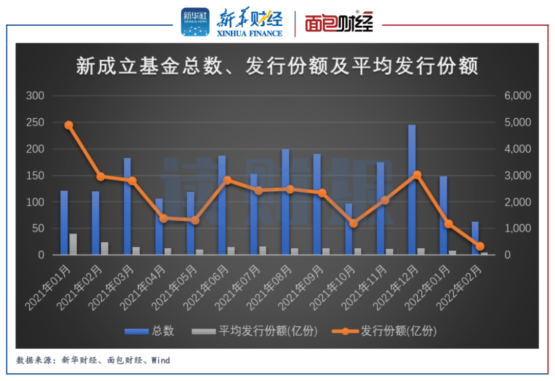 “虧錢效應”持續發酵下,2022年前兩月的公募基金成立數量持續下探。隨著增量資金減少,市場整體走勢或進一步受到影響。