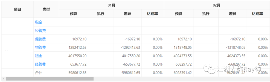 一定時(shí)期的某項(xiàng)指標(biāo)的實(shí)際完成額相比于預(yù)算目標(biāo)額的百分比,即:預(yù)算達(dá)成率=實(shí)際完成額 / 預(yù)算目標(biāo)額。由于預(yù)算一般按年進(jìn)行考核,因此預(yù)算達(dá)成率有月度達(dá)成率和累計(jì)達(dá)成率的概念,累計(jì)預(yù)算達(dá)成率=年累計(jì)實(shí)際完成額 / 年度預(yù)算目標(biāo)額。此外,運(yùn)營(yíng)過(guò)程中,進(jìn)行預(yù)算達(dá)成率評(píng)價(jià)的指標(biāo)一般包括各項(xiàng)收入和費(fèi)用,如:租金預(yù)算達(dá)成率、費(fèi)用預(yù)算使用率等,也有應(yīng)用于出租面積、商戶(hù)銷(xiāo)售額、客流等業(yè)務(wù)指標(biāo)上。