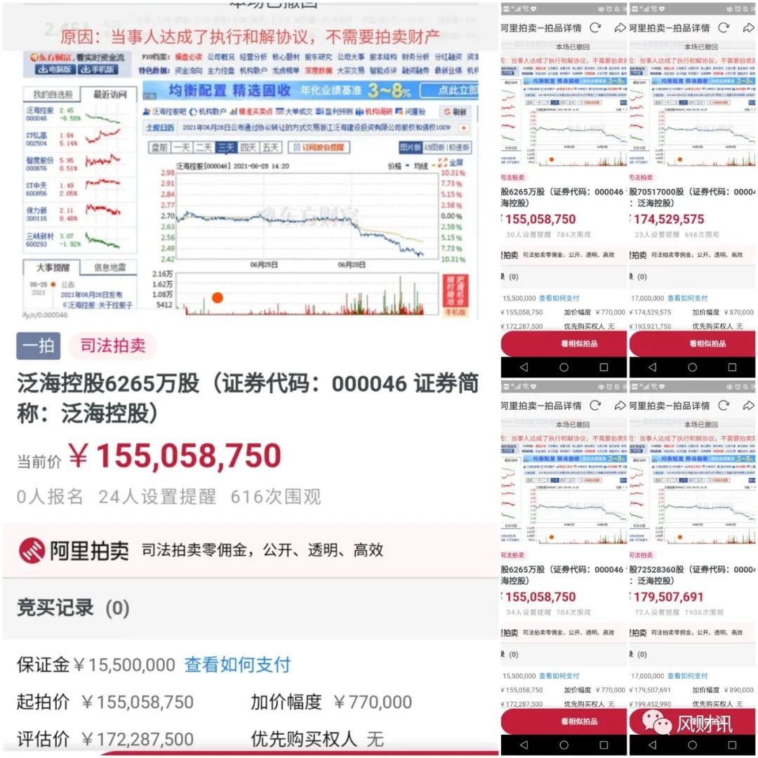風(fēng)財訊注意到,截至8月3日,泛海控股的收盤價為1.99元/股,低于競拍均價。