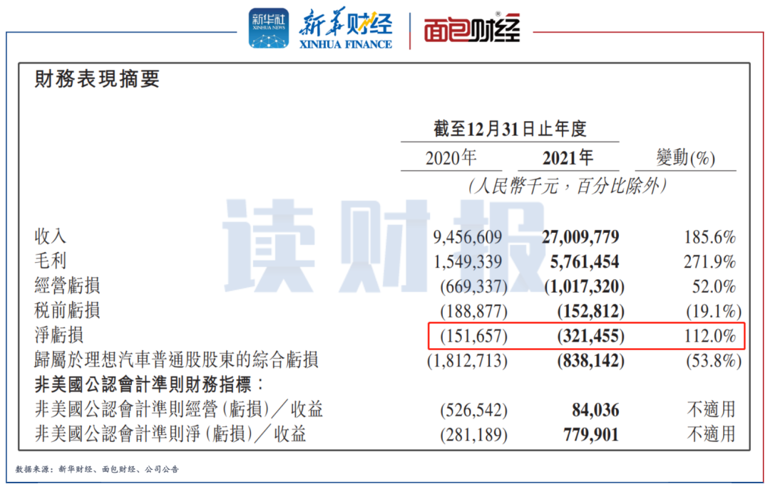 幾家造車新勢力企業(yè)中,理想汽車率先交出2021年度業(yè)績答卷,虧損同比擴(kuò)大近一倍。