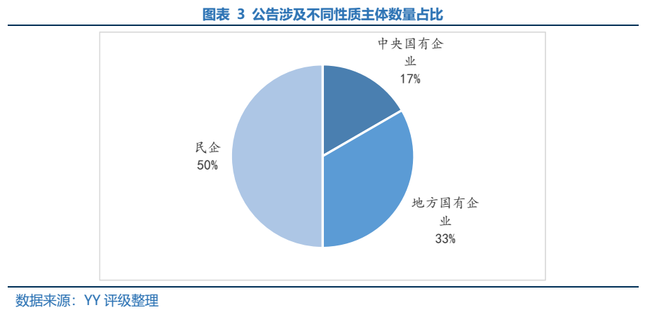 分主體性質來看,發過該類公告的主體以民企為主,主體數量占比約為47%