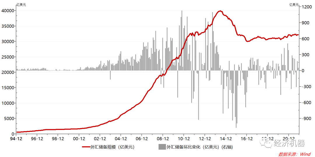 貿(mào)易高順差狀態(tài)持續(xù),但并未帶來外匯儲備增長。由于進口的超預(yù)期增長,11月我國貿(mào)易順差達717.2億美元,較上月高位回落,同比減少3.4%,低于預(yù)期的854億美元。但由于今年以來,出口持續(xù)強勁,我國貿(mào)易順差持續(xù)暴增,預(yù)計全年將達6400億美元。但高額貿(mào)易順差并未轉(zhuǎn)化為外匯儲備。11月份我國外匯儲備規(guī)模為3.22萬億美元,僅較去年底增加580億美元,幾乎沒有變化(圖3)。
