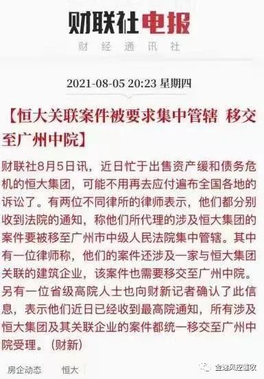 債務(wù)人的還款方式主要分三種:第一種是掙錢(qián)還款,第二種是借錢(qián)還債,有的人就是拆東墻補(bǔ)西墻,現(xiàn)在很多的人拆東墻補(bǔ)西墻都做不到了,借不到錢(qián)。第三種是賣(mài)資產(chǎn),通過(guò)賣(mài)掉自己的股份,房子,車(chē)子等等,通過(guò)賣(mài)資產(chǎn)去還這個(gè)錢(qián)。比如說(shuō)大家都知道的今年蘇寧開(kāi)始暴發(fā)債務(wù)危機(jī),首先就是它主業(yè)賺不到錢(qián),財(cái)報(bào)上顯示2012年到現(xiàn)在9年時(shí)間,蘇寧易購(gòu)包括線上店都在虧本,主業(yè)賺不到錢(qián),其次它也借不到錢(qián),去年問(wèn)阿里巴巴借了十個(gè)億,上千億的盤(pán)子借十個(gè)億有什么用,付利息都不夠。前兩步都不行以后,最后就是賣(mài)資產(chǎn)。首先賣(mài)足球隊(duì),蘇寧足球隊(duì)還欠員工的工資,去年還拿了一個(gè)中超的冠軍,拿了冠軍以后馬上就搞不下去了,就賣(mài)掉成了一個(gè)笑話(huà),足球隊(duì)也沒(méi)有人要不得不解散,最后還是深圳國(guó)資委接盤(pán)買(mǎi)了點(diǎn)股份。現(xiàn)在恒大也出現(xiàn)債務(wù)危機(jī),房地產(chǎn)這幾年特別是在四五線城市的收益都是比較差的,賺不到什么錢(qián),它已經(jīng)是上萬(wàn)億的負(fù)債,現(xiàn)在要降負(fù)債,把負(fù)債降到五千億之內(nèi),現(xiàn)在到期的債權(quán)要還,只有打折賣(mài)資產(chǎn)還。所以恒大就急于賣(mài)房子,我一個(gè)新疆客戶(hù)6月底買(mǎi)了恒大的房子,買(mǎi)了兩層,打折的力度都到五折了。原來(lái)一萬(wàn)塊一個(gè)平方,現(xiàn)在五千就賣(mài),通過(guò)這樣快速回款,不然到期債務(wù)還不出的話(huà),人家就要起訴它了。現(xiàn)在恒大官司已經(jīng)陸陸續(xù)續(xù)的爆發(fā)了,前一段時(shí)間是宜興一個(gè)銀行和他們打官司,現(xiàn)在又是廣告費(fèi)打官司,前陣子最高院還出了一個(gè)文件,就是恒大所有的官司必須移交到廣州中院統(tǒng)一裁定,現(xiàn)在全國(guó)債主都要起訴他了,都來(lái)不及處置和分財(cái)產(chǎn),所以發(fā)了一個(gè)文要移送到廣州中院。