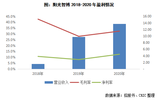 2021年6月11日陽光智博向港交所提交了招股書,截至2020年末陽光智博擁有183個(gè)在管項(xiàng)目,合計(jì)在管建筑面積約3160萬平方米,其中19個(gè)是商管項(xiàng)目;合約項(xiàng)目達(dá)326個(gè),合計(jì)建筑面積達(dá)到6920萬平方米,合約在管面積比為2.19,未來面積轉(zhuǎn)化具有較大的潛力。而從收入情況來看,截止2020年末,陽光智博實(shí)現(xiàn)營業(yè)收入13.72億元,同比增長40%,凈利潤1.73億元,其毛利率和凈利率分別為32.3%和12.6%。