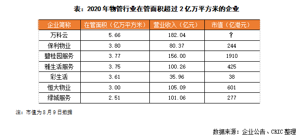一方面,行業(yè)競爭加劇,規(guī)模向頭部企業(yè)集中將成為一種趨勢。近幾年物管上市潮涌現(xiàn),但上市后物管企業(yè)卻呈現(xiàn)兩極化的發(fā)展,2020年碧桂園服務(wù)以156億元營收穩(wěn)居上市物企首位,而營收最低的為興業(yè)物聯(lián),全年?duì)I收僅有2.1億元,行業(yè)差距逐漸被拉大。隨著物管賽道競爭加劇,行業(yè)“大魚吃小魚”將成為一種常態(tài),此前便有龍湖收購億達(dá),碧桂園收購藍(lán)光嘉寶,規(guī)模向頭部企業(yè)集中將成為一種趨勢,陽光智博戰(zhàn)略換股萬物云也為物業(yè)行業(yè)整合提供了一個(gè)新思路。